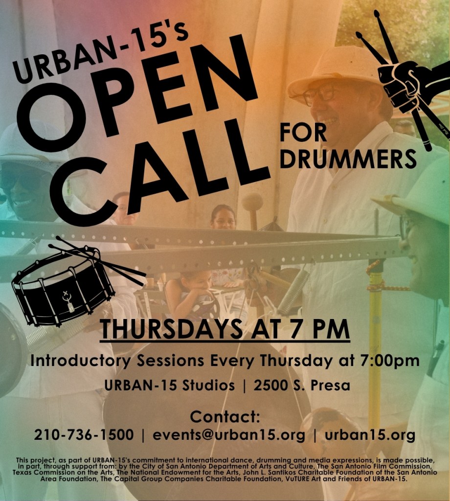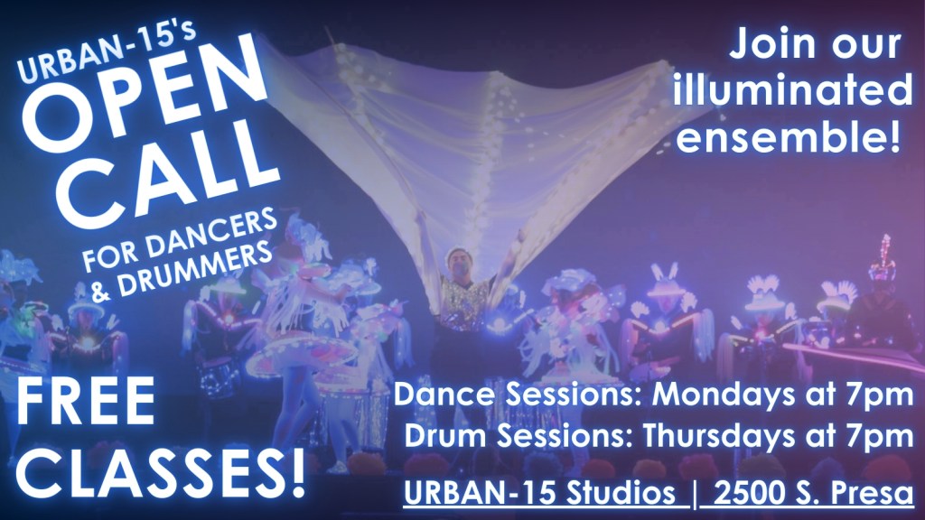 These performances include a wide variety events, including Día de Los Muertos, Luminaria, and International Festivals. Interested participants are invited to call (210) 736 1500 or email events@urban15.org