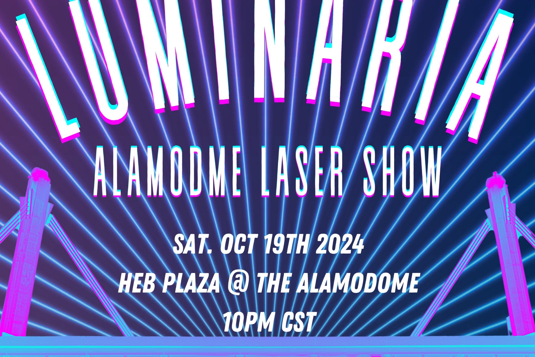 Join us on Saturday, October 19th for our most ambitious production to date: encompassing the entire North face of the Alamodome in Laser Beams! This “Laser Mapping” show will be controlled by Walsh while URBAN-15’s illuminated Dance and Drum ensemble perform original pieces! Just as last year, Walsh’s laser beams will be programmed to automatically react to specific instrumentations in our Drum ensemble, blending sounds and visuals in a surreal presentation.